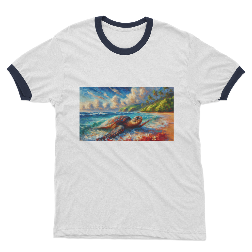 Aloha Sea Turtle Sea Turtle Ringer Cotton T-Shirt- FABA Collection