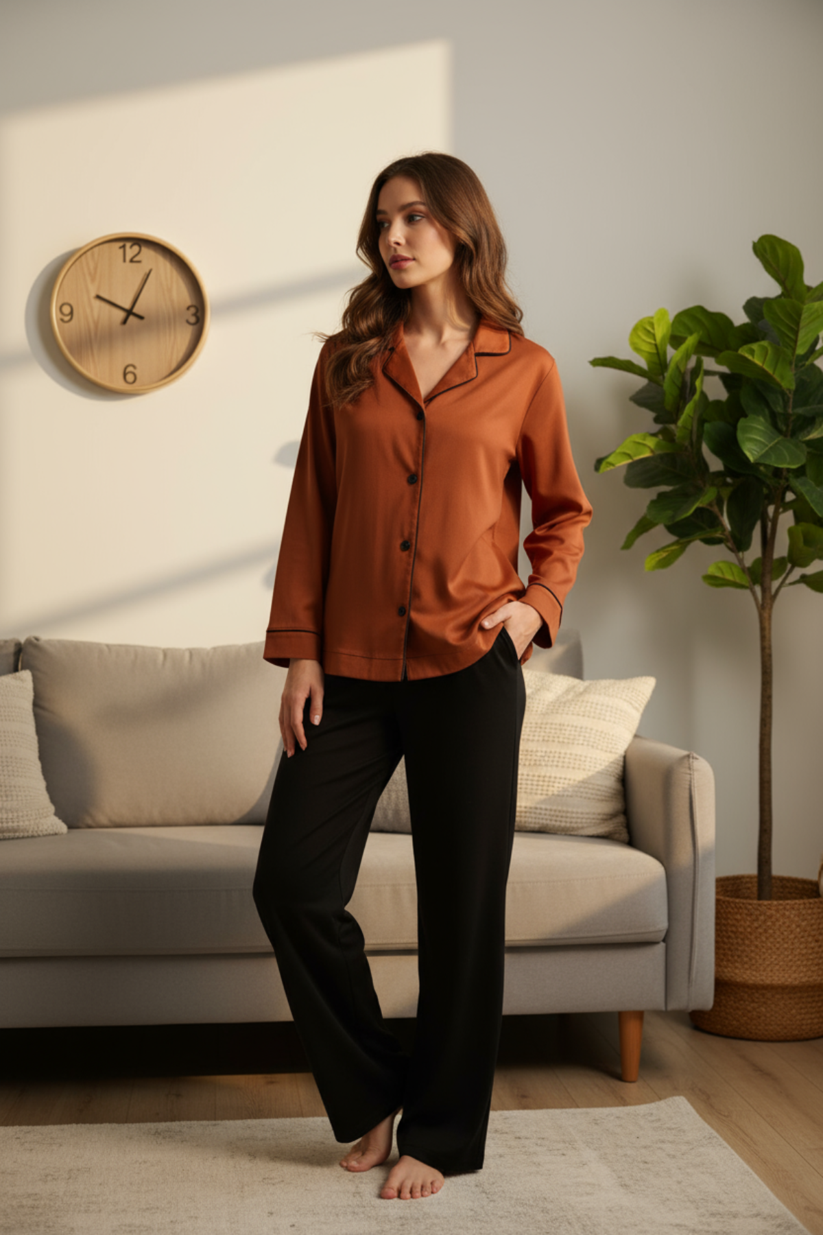 Rust Loungewear Silk Shirt - FABA