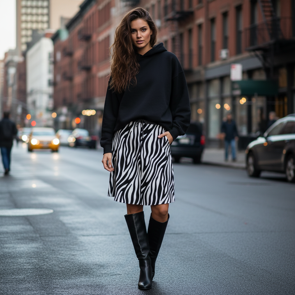 Zebra Double Layer Midi Skirt FABA Collection
