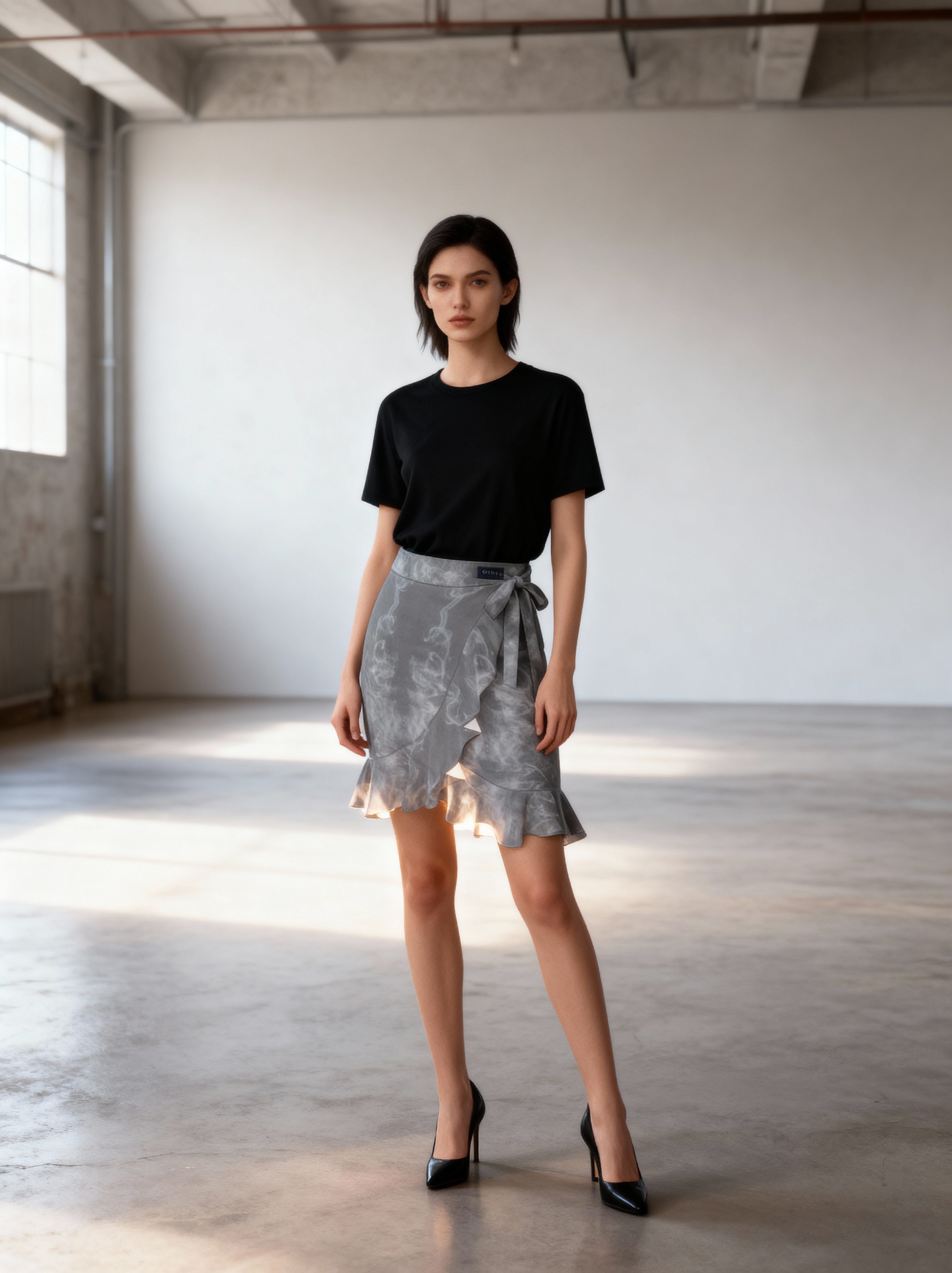 Grey Smoke Flounce Short Skirt - FABA Collection